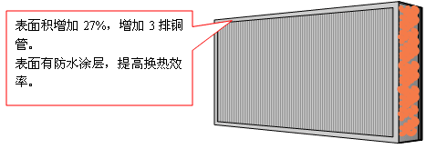 5.增大了蒸发器面积,使焓差值提高到0.95,提高了热交换效率。蒸发器的表面经过特殊的防水涂层处理,减少了冷凝水在其表面的停留时间,提高换热效率。